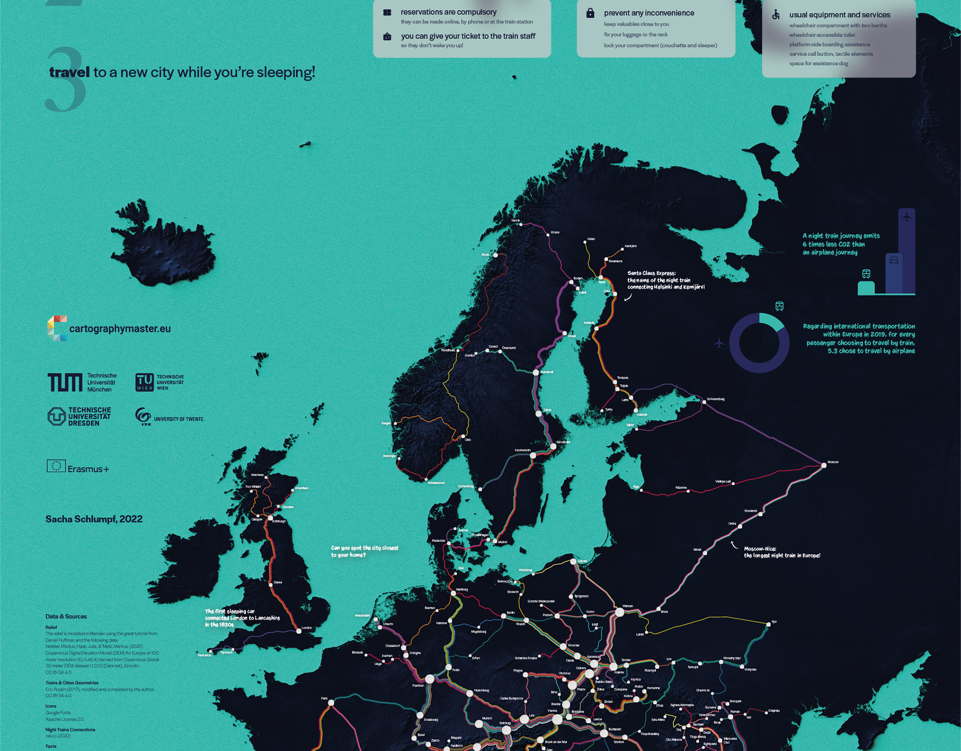 A very fun map to make! It highlights the metro network of Vienna in a unique and visually striking way. The map was featured at the 2022 European Cartographic Conference and received positive attention from attendees, many of whom were surprised by the out-of-the-box perspective it offered of the city.